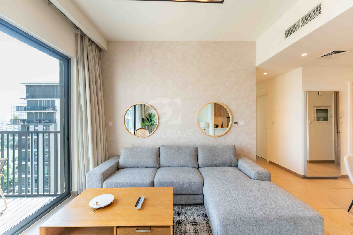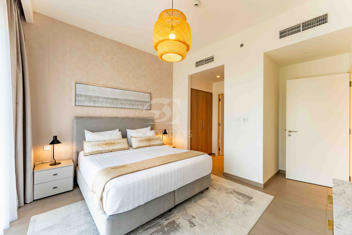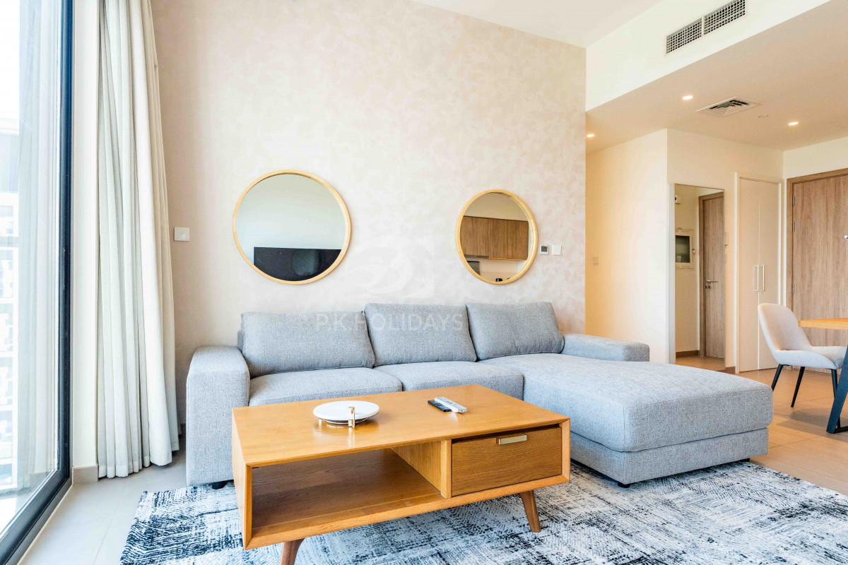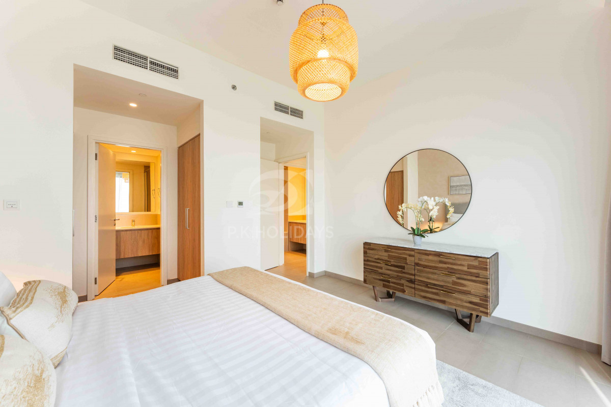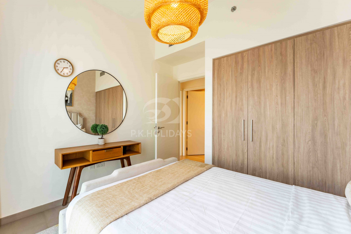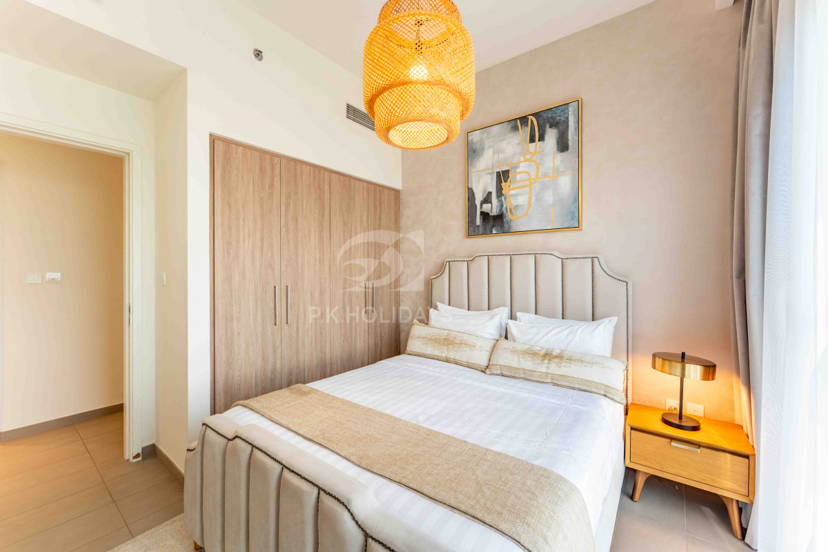Free Cleaning | No Commission - Executive Residences, Dubai Hills Estate, Luxury 2-Bedroom Apartment with Additional Sofa Bed. This Spacious 2-bedroom apartment, The flat has been carefully designed to combine different styles to give it that special look and feel. The apartment has a unique appearance and atmosphere thanks to the careful blending of various styles. The house has a spacious living and dining area, a kitchen that wraps around to a balcony, and wide windows in the living room that let in a lot of natural light. Key Features Amenities - Sofa bed - Free once-a-week Cleaning - 24/7 Security -Modern Gymnasium - Swimming Pool Apartment Amenities - Fully Sanitized Apartment - 24/7 guest services - Full-equipped apartment - Storage Room - Park and Pool View - High-Speed Wi-Fi Price is inclusive of all the utility bills. Extra Charges/Taxes: AED 20 per night for the first 30 nights; 5% VAT Dubai Tourism Fee AED 5,000 Refundable Security Deposit *Prices are subject to change based on season and availability. Bed linen and towels are provided. There is an extra powder room for the guests in the corridor. Additional Z-bed is available on request. A fee of AED 150 per night- Up to 6 nights stay. If staying more than 6 nights- a Fee of AED 100 per night (for the Z bed). Baby Cot is Free of charge (subject to availability). No Pets Allowed. The price includes 1 x week cleaning with bed linen change, water electricity bills, TV channels, and internet connection. Contact Us on: +971556264685 / +971 4 4541140 Please Visit Our Website: www.pkholidays.ae