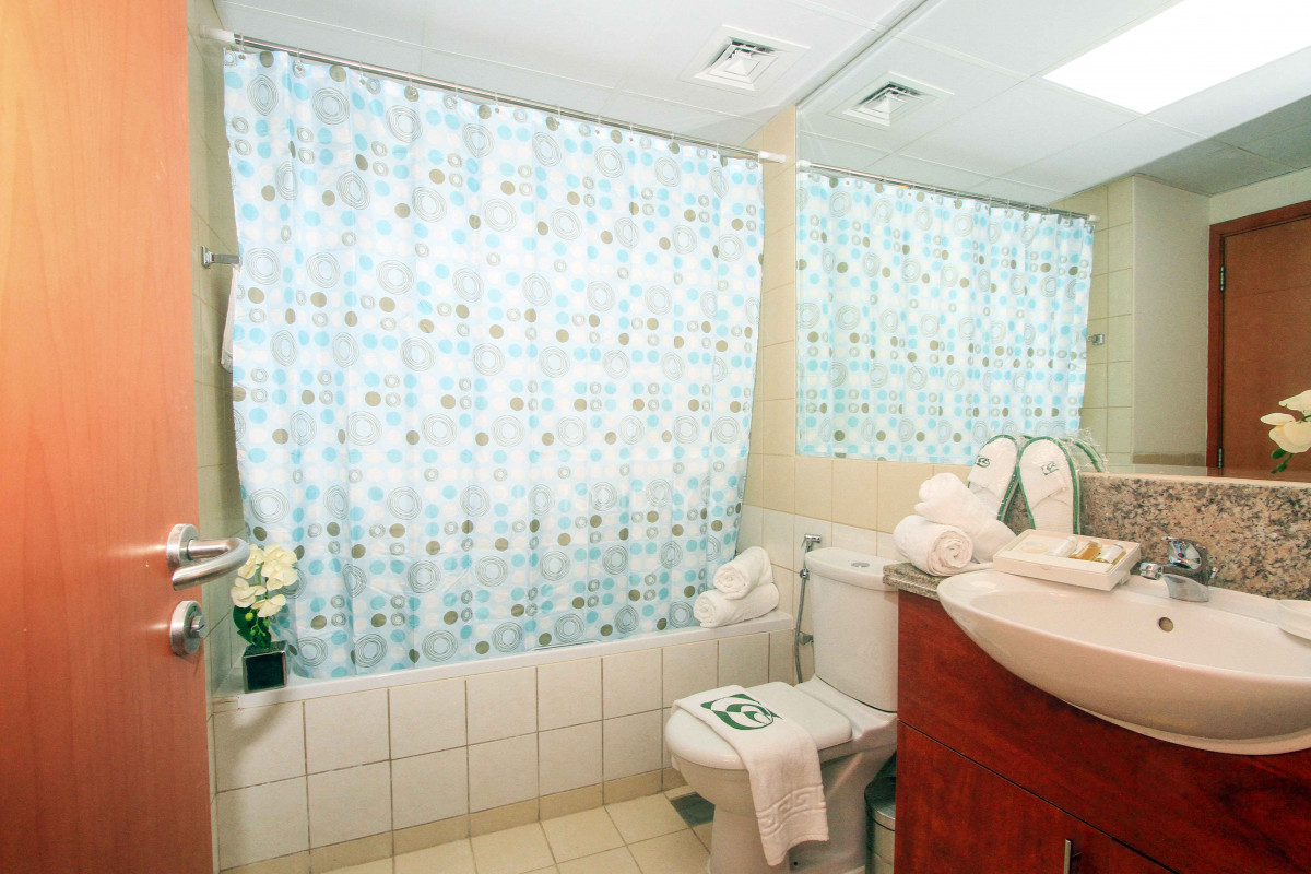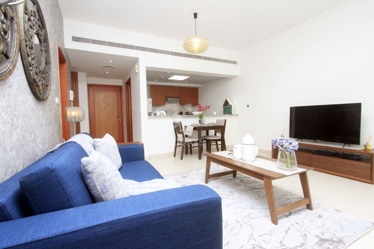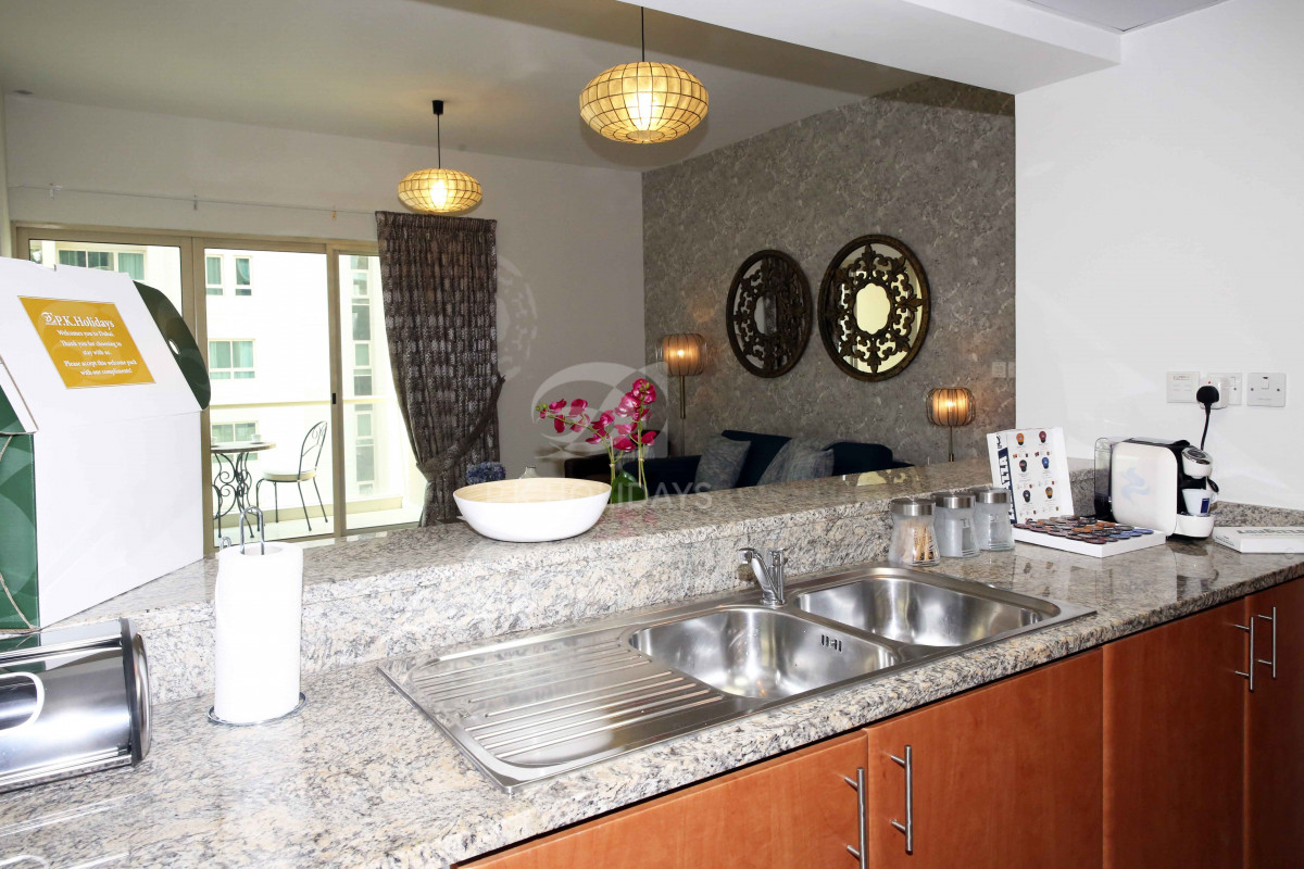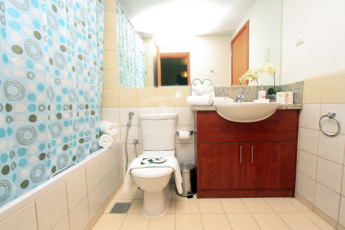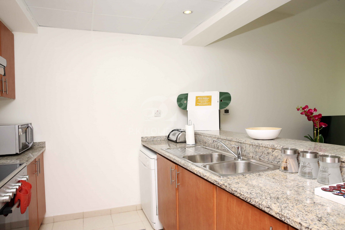 The Greens is a popular residential community located in New Dubai near to Dubai Internet City and Media City and easily accessible from the Sheikh Zayed Road. The Greens was one of the first new communities to be built in Dubai and is a fully completed development. Newly refurbished, Stylish, Modern Apartment. Open plan living, dining, kitchen areas. Living area has sofa set which is a sofa bed that can sleep 2, Coffee table, LCD TV & Unit. Kitchen is fully equipped with all cutlery and crockery, dishwasher, cooker, microwave, kettle, toaster, coffee machine. There is extra utility cupboard for washing machine and small storage place. Additional Z-bed available on request, fee of AED 150 per night up to 6 night stay, if staying more than 6 nights AED 100 per night. Baby Cot & Highchair FOC (subject to availability) Bedroom with king size bed and en-suite bathroom. Bed linen and towels are provided, The price includes 1 x week cleaning with bed linen change, water electricity bills, TV channels, internet connection, 1 allocated car park space, access to shared pool and gym. No Smoking. Pets are not allowed in any of our managed Properties. In case if it comes to our attention that pets are accommodated, the full Security Deposit amount will be forfeited.