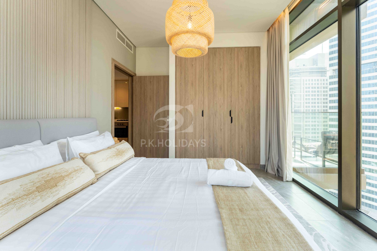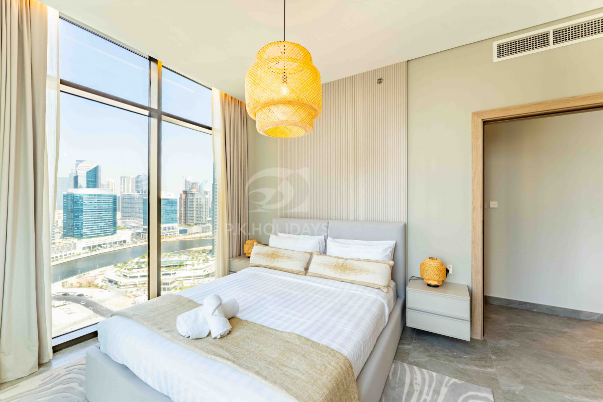 Luxurious 1-Bedroom Waterfront Apartment in Peninsula One, Business Bay Live in the heart of Dubai's vibrant Business Bay with this exquisite one-bedroom apartment in the brand-new Peninsula One tower. Positioned to maximize its glorious waterfront setting on the Dubai Canal, this home offers an urban and serene lifestyle in one of the city's most desirable communities. Floor-to-ceiling windows flood the spacious living area with natural light and provide breathtaking views of the surrounding Downtown skyline. This apartment features: A spacious, light-filled living and dining area An elegant, modern kitchen with high-quality finishes and integrated white goods A private balcony showcasing stunning park and canal vistas High-end fixtures and flawless craftsmanship throughout Peninsula One Amenities: Active Living: Enjoy a fully equipped gym with saunas and steam rooms, indoor and outdoor swimming pools, and a BBQ deck for entertaining. Outdoor Recreation: Access tennis and basketball courts, a skate park, and beautifully landscaped gardens. Convenience & Security: Benefit from 24/7 security, high-speed Wi-Fi, and covered parking. Family-Friendly: Features include a kids pool and outdoor play area. Services & Inclusions: Weekly professional cleaning and linen change Inclusive of all utility bills Complimentary high-speed Wi-Fi Charges: Dubai Tourism Fee: AED 10 per night for the first 30 nights; 5% VAT Refundable Security Deposit: AED 3,000 Extra Z-bed: AED 150 per night (up to 6 nights); AED 100 per night (7+ nights) Baby cot available free of charge (subject to availability) No Pets Allowed Contact Us: Visit our website: www.pkholidays.ae Call Us: +971556264685 / +971 4 4541140
