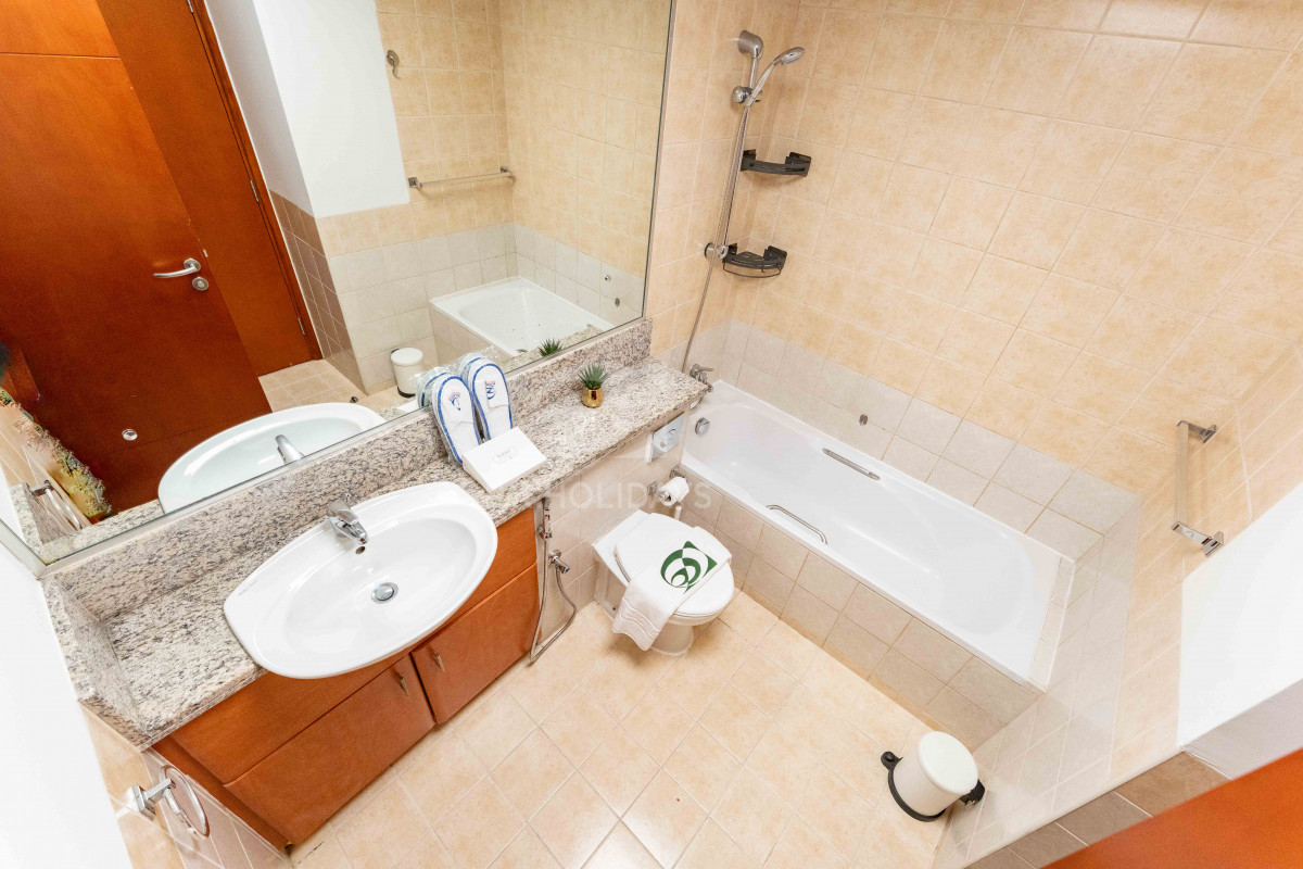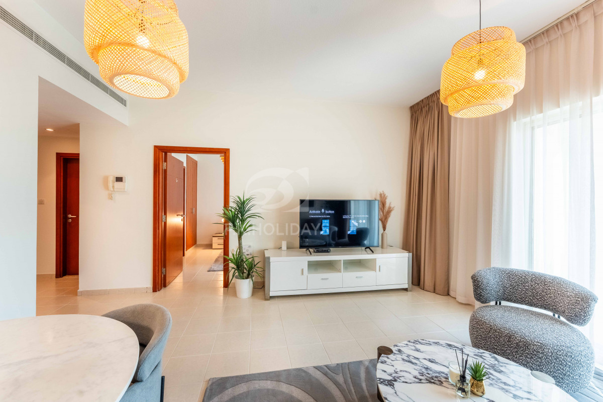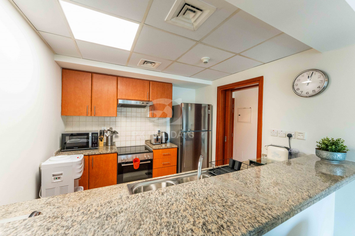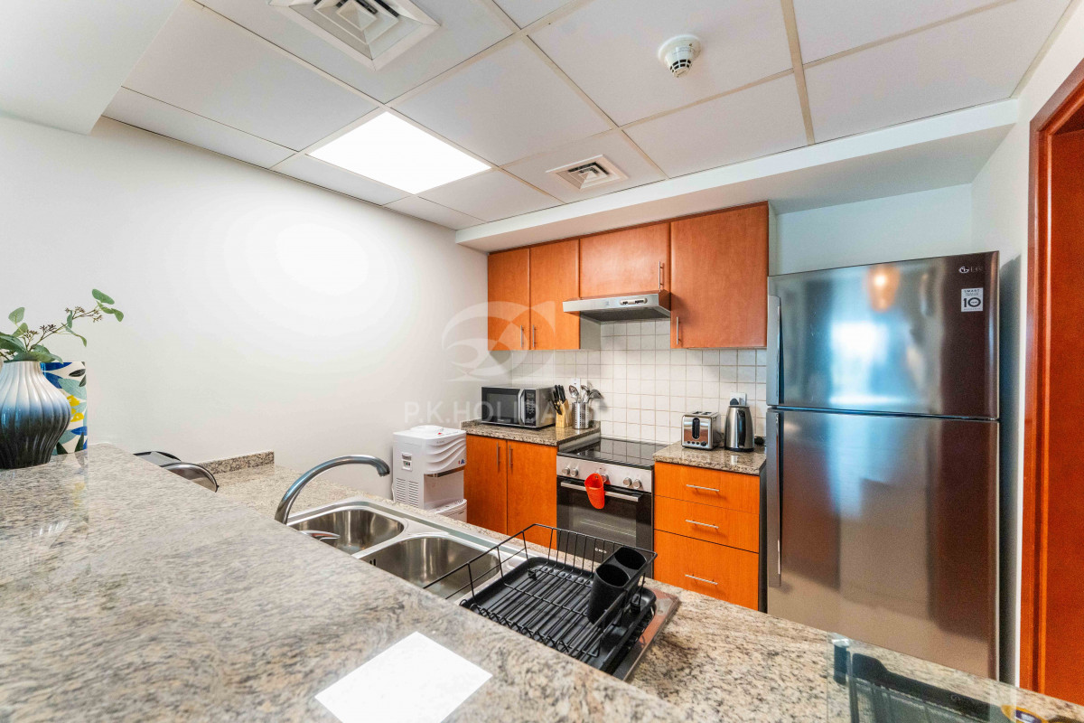 PK Holidays is proud to present this 1 bedroom furnished apartment located in the sought after family community of Al Arta , The Greens. The Greens is an established family community, set just off the Sheikh Zayed Road, and enclosed in dense landscaping and water features with well-maintained community amenities, such as BBQ area, Gym, Swimming Pool. The community houses a Village Centre, which has a supermarket, pharmacy, boutique restaurants and fast-food outlets. This holiday home is a comfortably furnished, modern 1 bedroom apartment, fully fitted for your ease and requirements. The apartment features an open-plan Living, Dining & Kitchen Area, which is fully equipped with all cutlery and crockery, dishwasher, washing machine, cooker, microwave, kettle, toaster, coffee machine. The bedroom fits a queen-size bed with an en-suite bathroom. Key Features & Amenities: - Free once-a-week Cleaning - 24/7 Security -Modern Gymnasium - Swimming Pool Apartment Amenities - Fully Sanitized Apartment - 24/7 guest services - Full-equipped apartment - Storage Room - Park and Pool View - High-Speed WiFi Price is inclusive of all the utility bills. Extra Charges/Taxes: AED 10 per night for the first 30 nights; 5% VAT Dubai Tourism Fee AED 3,000 Refundable Security Deposit *Prices are subject to change based on season and availability. Bed linen and towels are provided. There is extra powder room for the guests in the corridor. Additional Z-bed available on request. Fee of AED 150 per night- Up to 6 nights stay. If staying more than 6 nights- Fee of AED 100 per night (for the Z bed). Baby Cot Free of charge (subject to availability). No Pets Allowed. The price includes 1 x week cleaning with bed linen change, water electricity bills, TV channels, internet connection. Contact Us on: +971 55 365 1051 / +971 4 4541140 Please Visit Our Website: www.pkholidays.ae