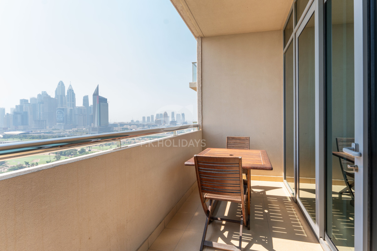 Golf Tower 2 is located on the perimeter of the internationally acclaimed Emirates Golf Club, it is surrounded by manicured green areas and exceptional golf courses. Golf Towers truly is a great location. The apartment is on the 20th floor and overlooks the Golf course. Newly refurbished stylish, bright, spacious property. Open plan living, and dining areas with separate kitchen with breakfast bar, coffee table, side tables, TV unit with DVD player. Separate powder room for guests and utility cupboard near by main entrance. Balcony has stunning views overlooking the Golf course. Access to balcony from living room & bedroom. Fully equipped kitchen with built in white goods - cooker, fridge and freezer, washing machine, dishwasher, microwave, kettle, toaster, coffee machine. Bedroom has queen size bed, built in wardrobes with en-suite bathroom and access to balcony. Bed linen and towels are provided. Additional Z-bed available on request, fee of AED 150 per night up to 6 night stay, if staying more than 6 nights AED 100 per night. Baby Cot Free of charge (subject to availability) Pets are not allowed in any of our managed Properties. In case if it comes to our attention that pets are accommodated, the full Security Deposit amount will be forfeited Extra Charges/Taxes: AED 10 per night for the first 30 nights; 5% VAT Dubai Tourism Fee AED 3,000 Refundable Security Deposit *Prices are subject to change based on season and availability. The price includes 1 x week cleaning with bed linen change, water electricity bills, TV channels, internet connection. Contact Us on: +971 55 365 1051 / +971 4 4541140 Please Visit Our Website: www.pkholidays.ae